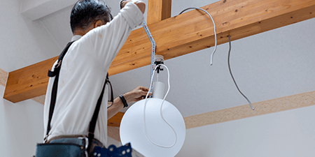 建物の形状や他の設備との取り合いを配慮し、効率かつ経済的な照明器具を設置する工事を行います。蛍光灯からLED照明への交換工事や住宅、オフィスなどの照明の入れ替え・新たに設置する工事など幅広い分野における専門的な技術を活かします。